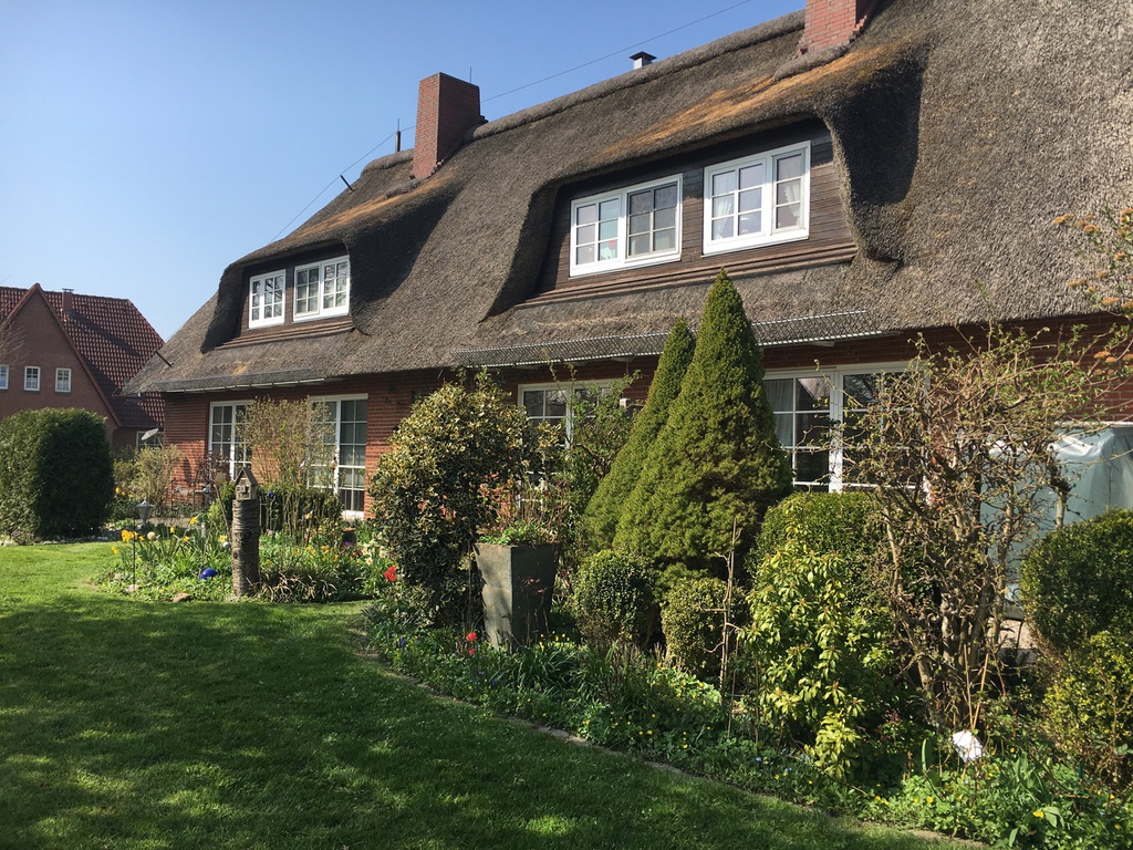 Naturliebhaber kommen im Katinger Watt und dem nahe gelegenen Westerhever Leuchtturm genauso auf Ihre Kosten wie Aktivurlauber, die das Wandern, Radfahren, Surfen, Kiten, Golfen, sowie die anschließende Wellnessbehandlung lieben.Am Rande der Natur an Wiesen mit Kühen, Pferden, Schafen und im Frühjahr ziehen die Graugänse vorbei. Ein wunderschönes Naturschauspiel. Genießen Sie das mit Flair eingerichtete Haus, das mit seiner Einrichtung den hellen Farben und Naturmaterialien die Liebe zum Wohnen am Meer wiederspiegelt.